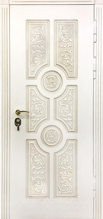 Прочная основа из профильной трубы и стального листа толщиной 2 мм делает конструкцию долговечной и устойчивой к внешним воздействиям, а ребра жесткости и блокираторы усиливают надежность. Для защиты установлены два замка российского производства — сувальдный Просам и цилиндровый Мосрентген, каждый с тремя ригелями, что создает дополнительный уровень безопасности. Металлическая входная дверь в загородный дом №4 отделана панелями МДФ с покрытием ПВХ, которые сохраняют привлекательный вид даже при интенсивной эксплуатации, стойко переносят перепады температуры и мелкие механические повреждения. Два контура уплотнителей помогают удерживать тепло и защищают от сквозняков, а при необходимости дверь можно дополнить утеплителем или декоративными элементами — от зеркала до ковки. Универсальная конструкция подойдет для установки в частный коттедж, городскую квартиру или офис, создавая баланс между надежностью и эстетикой.