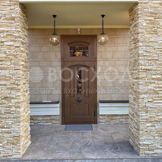 Поскольку главное назначение входных дверей в коттедж – защита жилья, производитель предлагает усилить конструкцию броненакладками, специальными петлями и надёжными замковыми механизмами.